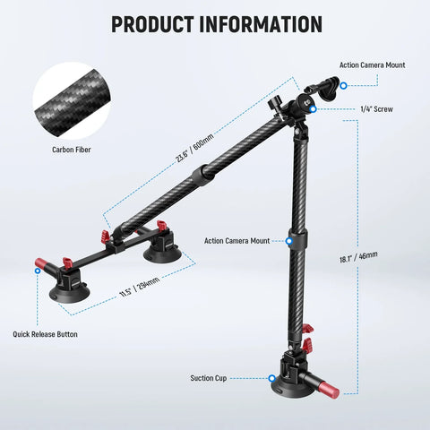• 1 × Neewer CA136 Triple Suction Cup Car Mount with Extension Poles