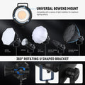 The NEEWER CB200C solves these problems with its advanced features and smart control. With three lighting modes- CCT, HSI, and FX- you can precisely control colour temperature, hue, saturation, and special effects. The built-in silent fan ensures that the light remains at a safe temperature without creating noise that could ruin your audio recording. For maximum convenience, the light can be controlled wirelessly using the NEEWER app via Bluetooth or 2.4G wireless control. The Bowens mount and umbrella socket allow you to attach a wide range of light modifiers, giving you the freedom to shape and diffuse the light to suit your creative vision.