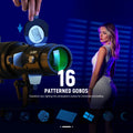 - Includes 16 interchangeable metal gobos for creative light patterns