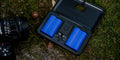 This charger solves multiple workflow challenges simultaneously. It charges two batteries independently whilst providing instant SD card file transfer capabilities. When loaded with charged batteries, it transforms into a power bank for smartphones and other USB devices. The protective case design safely stores spare batteries, and the backlit LCD display provides clear status information even when closed, ensuring you're always informed about your power levels.